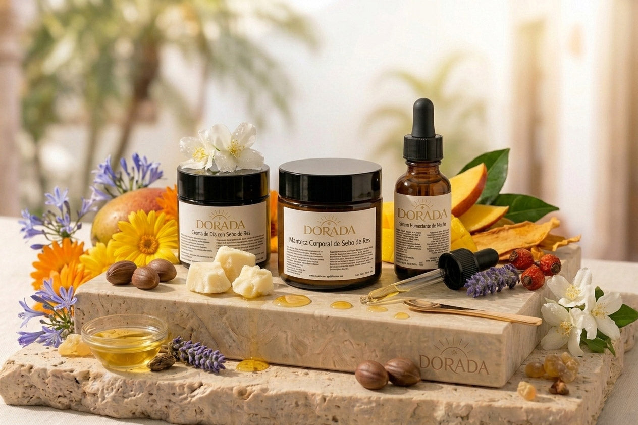Incluye: Crema de Día con Sebo de Res, Sérum Humectante Nocturno y Manteca Corporal de Sebo de Res.